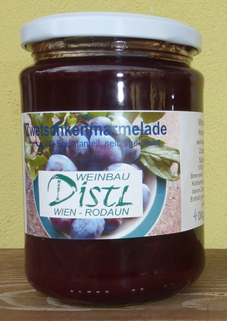 Selbstgemachte Marmelade aus Zwetschken vom eigenen Garten.